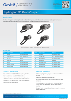 - Use with Fast Flow Filling systems, storage cascade to trailer / transporter, trailer / transporter connection to daughter station and direct feed to CNG dispensers